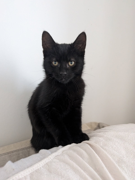 Etoile est une jolie chatonne noire de 2 mois et demi . Très câline et joueuse ,elle partage ses jeux avec sa soeur Flamme . Ces deux chatonnes sont adorables et de vrais "machines à ronrons". Sauf à adopter les deux, les adoptants devront être présents et disponibles pour que cette chatonne grandisse dans les meilleures conditions. Elle est visible chez Laure à St Maur.