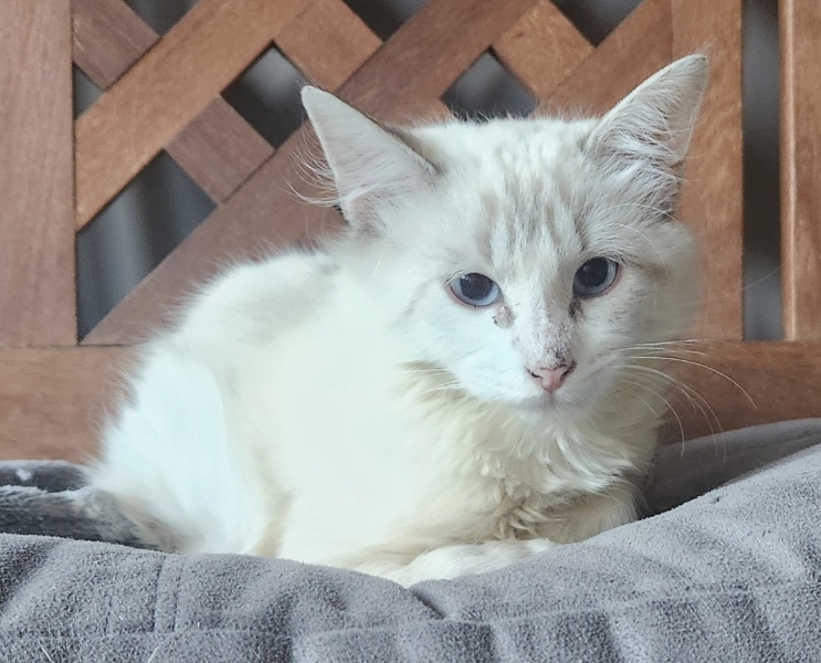 Somptueuse chatonne croisée Sacré de Birmanie :poils mi longs, yeux bleus , Un peu timide quand elle ne connait pas, il faudra prendre le temps de la séduire mais comme toujours c 'est elle qui choisira en exprimant " son coup de coeur". Elle est visible chez Laure à CréteilIl est indispensable de compléter le formulaire de pré-adoption