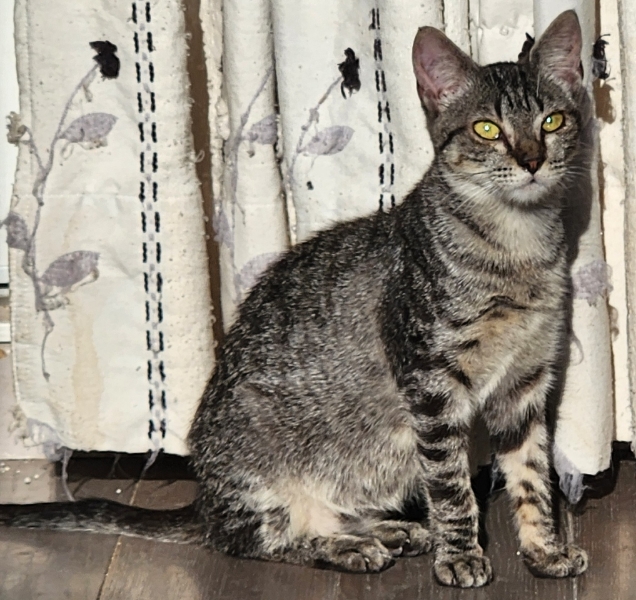 Argent est une jolie chatonne tigrée gris anthracite et argentée aux yeux jaune orangé. C 'est une minette timide , qui a besoin d être rassurée mais une fois en confiance ,elle se laisse caresser et semble bien apprécier !.Il faudra lui accorder le temps nécessaire pour nouer , avec elle, une relation de tendresse et de confiance réciproque . Elle a beaucoup progressé en deux semaines ! Elle aime jouer et apprécie les friandises..Elle est visible chez Laure à Créteil.. Il est indispensable de compléter le formulaire de pré-adoption