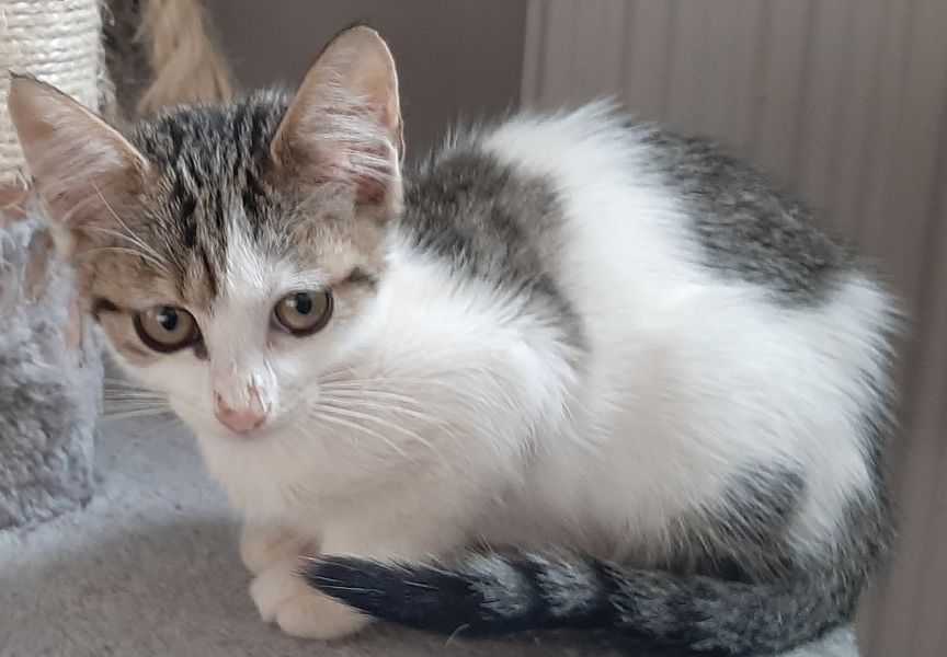 Craquante chatonne blanche et tigrée , hyper mignonne et sociable , c 'est une petite séductrice charmante qui a tout pour plaire ! Joyeuse, intrépide, joueuse , sociable , elle fera le bonheur d' une famille disponible, aimante et responsable de ses engagements Elle est visible chez Laure à Créteil..Il est indispensable de compléter le formulaire de pré-adoption
