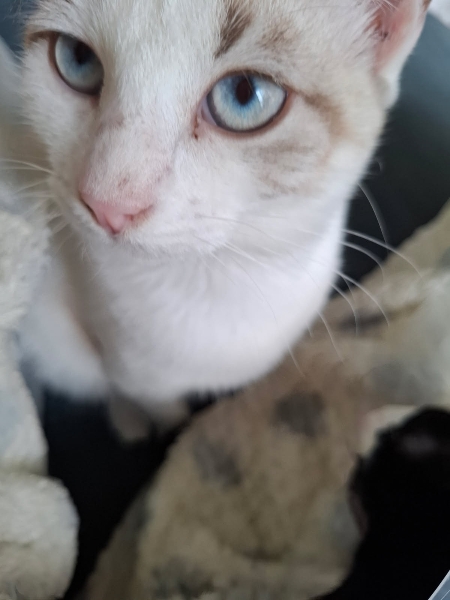 Très beau chaton de type siamois aux superbe yeux bleu ciel nuancé . Il est également joueur, câlin , sociable bref un chaton bien équilibré qui attend une super famille d adoption:! Il est visible chez Isabelle à Bonneuil et attend une super famille aimante , disponible et responsable .