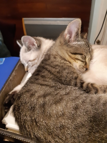 "Mila est une chatonne toute mignonne. D’abord un peu craintive, elle devient vite une aventurière mais qui aime beaucoup les câlins. Elle apprécie les jeux, en particulier avec sa soeur Kira dont elle est très proche. Quand l’une s’éloigne, l’autre l’appelle. Elle dorment toujours ensemble." Vous l' aurez compris ces deux petites perles sont inséparables et " A 2 c 'est mieux " donc sur les constatations de Claire une adoption double s impose ...Ces deux soeurs sont visibles à St Maur (94100).Il est indispensable de compléter le formulaire de pré-adoption