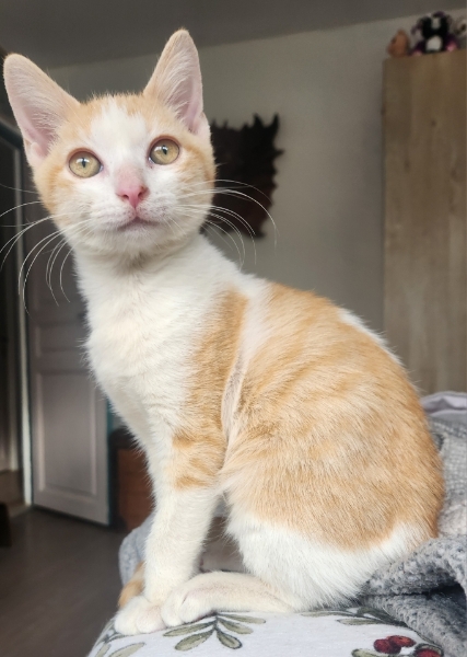 Biscuit est un beau chaton roux clairet blanc . Il est adorable, sociable, joueur , câlin, facile à vivre .Un beau bébé qui fera le bonheur d une famille d adoption responsable, disponible et aimante . Il est visible chez Laure à Créteil .. Il est indispensable de compléter le formulaire de pré-adoption