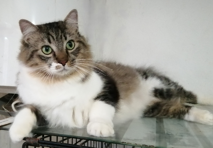 Racoon est un somptueux ,et jeune chat à poils longs et yeux verts. Comme tous ces matous qui nous viennent des Iles, il est d une extrême gentillesse bien que craintif quand il ne connait pas ! Voici ce qu en disait sa première FA en Guadeloupe " Adore les câlins, il demande à être pris dans les bras (ne connait que mon copain et moi), ok autres chats, n'a pas peur des chiens calmes (les miens sont de petite ou moyenne taille, n'a jamais vu de très grand chien)"