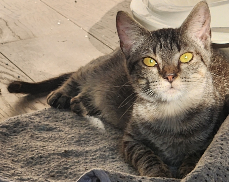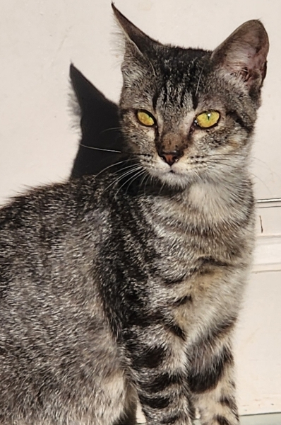 Argent est une jolie chatonne tigrée gris anthracite et argentée aux yeux jaune orangé. C 'est une minette timide , qui a besoin d être rassurée mais une fois en confiance ,elle se laisse caresser et semble bien apprécier !.Il faudra lui accorder le temps nécessaire pour nouer , avec elle, une relation de tendresse et de confiance réciproque . Elle a beaucoup progressé en deux semaines ! Elle aime jouer et apprécie les friandises..Elle est visible chez Laure à Créteil.. Il est indispensable de compléter le formulaire de pré-adoption